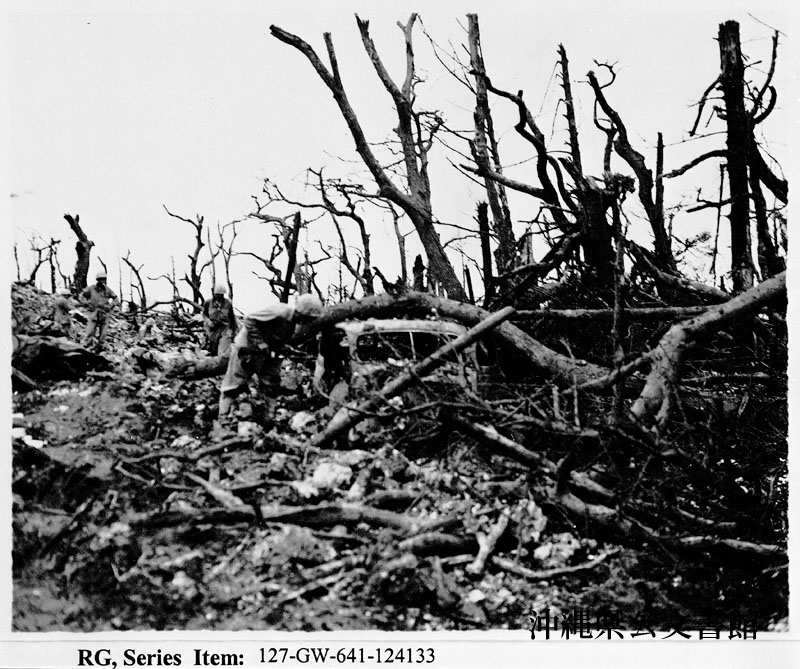 | 30 | | | 分 類 名: | 米国海兵隊 | | 撮 影 地: | | | 撮 影 日: | 1945年 4月28日 | | アルバム名: | 米海兵隊写真資料29 | | 写真解説: | 【原文】 Tank #3 to the right of Jap gun, trying to come in behind Jap gun, hit land mine which demolished it. 【和訳】 日本軍の大砲の右側にいる3号戦車。日本軍の大砲の後方にまわろうとして地雷に触れ大破した。 | |
