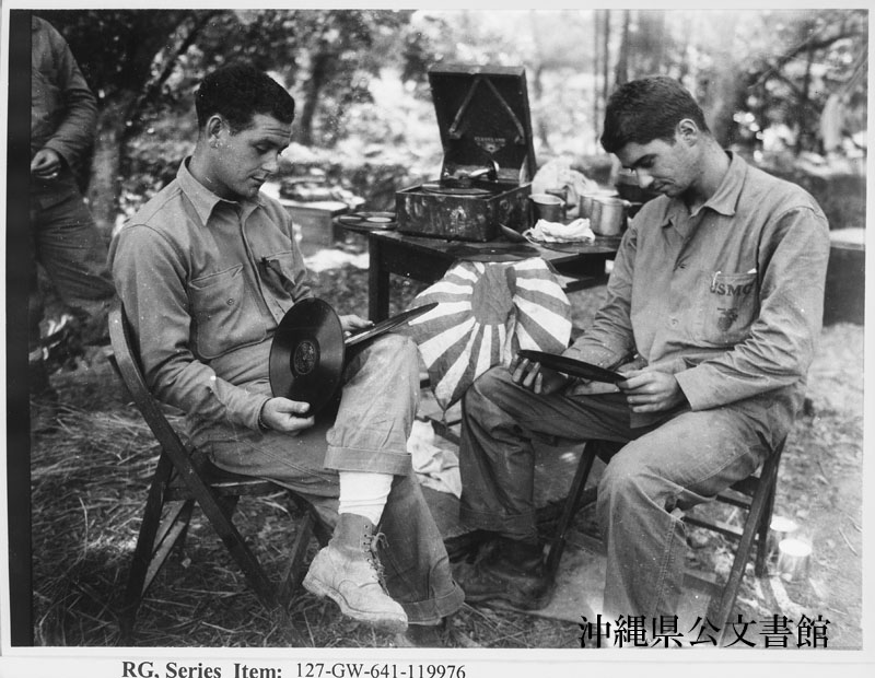 | 31 | | | 分 類 名: | 米国海兵隊 | | 撮 影 地: | | | 撮 影 日: | 1945年 5月 | | アルバム名: | 米海兵隊写真資料29 | | 写真解説: | 【原文】 During a lull in the fighting -Two Rhode Island Marines listen to Japanese phonograph records found on Okinawa. 【和訳】 戦闘の合間に、沖縄で見つけた日本製蓄音機でレコードを聴くロードアイランド州出身の海兵隊員2名。 | |
