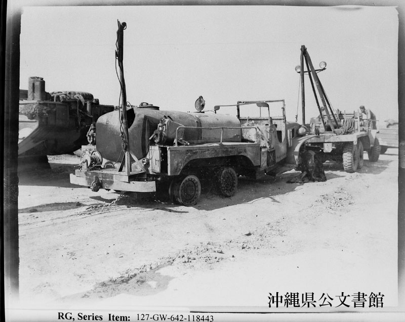 | 18 | | | 分 類 名: | 米国海兵隊 | | 撮 影 地: | ブルービーチ1読谷村) | | 撮 影 日: | 1945年 4月 | | アルバム名: | 米海兵隊写真資料29 | | 写真解説: | 【原文】 No. 3 of a series of 5: The left track of the vehicle was the only part that could be salvaged. This photo shows the burner at work. 【和訳】 5枚組のNo.3。唯一引き揚げ可能な部分は左のキャタピラーであった。写真は、バーナーで作業中の様子。 | |