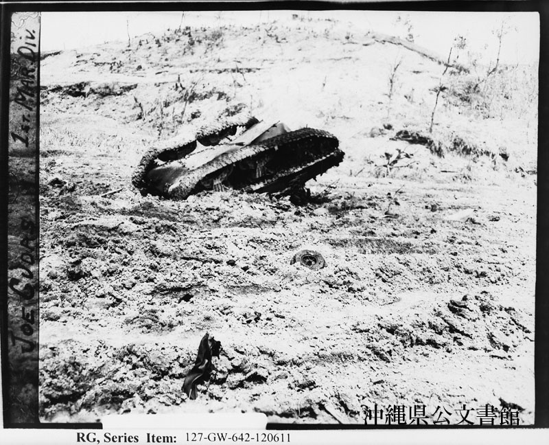| 51 | | | 分 類 名: | 米国海兵隊 | | 撮 影 地: | | | 撮 影 日: | 1945年 5月19日 | | アルバム名: | 米海兵隊写真資料29 | | 写真解説: | 【原文】 JAP TANK PERCHES ON WILSON'S RIDGE--This Jap tank was found high in the enemy-held side of ”Wilson's Ridge” after Marines wiped out the Japs in ”Awacha Pocket” on the Naha front. How the tank got into the almost impossible position only the Japs know and 【和訳】 ウィルソン丘陵で行き止まった日本軍戦車。那覇戦線にある“安波茶ポケット”で海兵隊が日本軍を掃討した後、ウィルソン丘陵の日本軍陣地側の高台で発見された日本軍戦車。ほとんど到達不可能なこの場所までいかにして戦車が到達できたかは日本軍兵士のみが知っているが、彼らは皆戦死した。戦車の傍らに日本兵の死体がある。 | |