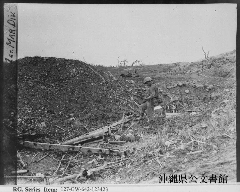 | 62 | | | 分 類 名: | 米国海兵隊 | | 撮 影 地: | | | 撮 影 日: | 1945年 6月 2日 | | アルバム名: | 米海兵隊写真資料29 | | 写真解説: | 【原文】 Ruins of a Jap Barracks after artillery has done its work in Shuri Castle area. 【和訳】 砲兵隊の攻撃で廃墟となった首里城内の日本軍兵舎。 | |