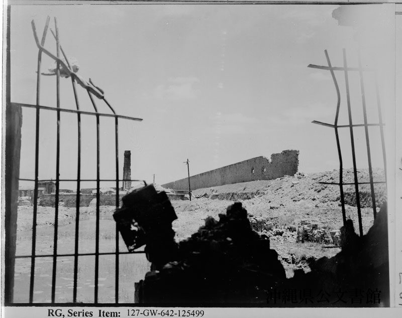 | 37 | | | 分 類 名: | 米国海兵隊 | | 撮 影 地: | | | 撮 影 日: | 1945年 5月 | | アルバム名: | 米海兵隊写真資料29 | | 写真解説: | 【原文】 CASTLE WALLS--Rubble of the walls of Shuri castle below which lies the moat. In background is Shuri city. The battered trees are part of a grove which surrounded the castle. The castle was taken by units of the Fifth Marine Regiment. 【和訳】 首里城の城壁。瓦礫と化した首里城の城壁。その下には堀がめぐらされていた。後方に見えるのは首里の町。焼け残った樹木は城を囲んでいた森の一部である。首里城は第5海兵連隊によって攻略された。 | |