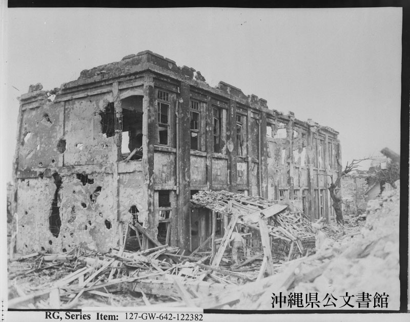 | 36 | | | 分 類 名: | 米国海兵隊 | | 撮 影 地: | | | 撮 影 日: | 1945年 5月 | | アルバム名: | 米海兵隊写真資料29 | | 写真解説: | 【原文】 SHURI BARRACKS---Typical of Jap reinforced concrete construction of all military buildings is this barracks at Shuri fortress which has been pounded by naval gunfire and artillery. The barracks was taken by a spearhead bn. of the fifth Mar. Reg't. command 【和訳】 首里兵舎。首里要塞にあるこの兵舎はコンクリートで補強された典型的な軍関係建築物である。この建物は艦砲射撃や大砲の攻撃にさらされていた。この兵舎は、シェルバーン中佐テキサス州出身)率いる第5海兵連隊の先陣大隊に攻略された。 | |