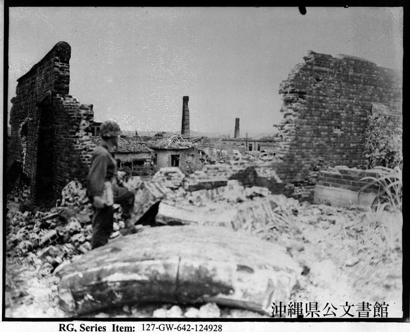 | 73 | | | 分 類 名: | 米国海兵隊 | | 撮 影 地: | | | 撮 影 日: | 1945年 6月13日 | | アルバム名: | 米海兵隊写真資料29 | | 写真解説: | 【原文】 Marine views wrecked Jap prison in Naha. 【和訳】 大破した那覇刑務所を見る海兵隊員。 | |