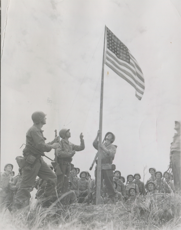 | 9 | | | 分 類 名: | 米国陸軍通信隊 沖縄関係 | | 撮 影 地: | 慶留間島 | | 撮 影 日: | 1945年3月31日 | | アルバム名: | 米陸軍通信隊写真 13 | | 写真解説: | 【原文】U.S. troops of the tenth Army's 77th Div raise the stars and stripes for the first time on a Japanese home islands, tiny Geruma Shima, during the landings preceding the invasion of Okinawa. / 【和訳】第10軍第77師団が、沖縄侵攻に先立って小さな慶留間で、日本列島における初めての星条旗を掲げる。 | |