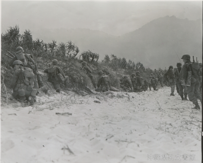 | 18 | | | 分 類 名: | 米国陸軍通信隊 沖縄関係 | | 撮 影 地: | 沖縄 | | 撮 影 日: | 1945年4月1日 | | アルバム名: | 米陸軍通信隊写真 13 | | 写真解説: | 【原文】Veteran troops of the 96th Div. Storm the seawall protecting the western shores of the island. / 【和訳】第96師団の精鋭部隊が島の西岸を守る護岸を襲撃。 | |