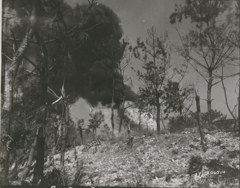 | 13 | | | 分 類 名: | 米国陸軍通信隊 沖縄関係 | | 撮 影 地: | 伊江島 | | 撮 影 日: | 1945年4月14日 | | アルバム名: | 米陸軍通信隊写真 13 | | 写真解説: | 【原文】Under heavy fire from U.S. forces landing on the island, Jap pillbox on Ie Shima goes up in flames. / 【和訳】伊江島に上陸した米軍の激しい砲火で、燃え上がる日本軍のトーチカ。 | |