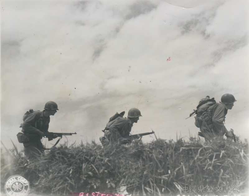 | 15 | | | 分 類 名: | 米国陸軍通信隊 沖縄関係 | | 撮 影 地: | 伊江島 | | 撮 影 日: | 1945年4月17日 | | アルバム名: | 米陸軍通信隊写真 13 | | 写真解説: | 【原文】Infantrymen of the U.S. Tenth Army move up, cautiously and on the alert, under constant sniper and machine gun fire. / 【和訳】狙撃や機関銃の攻撃を受けながらも、慎重に警戒しながら移動する第10陸軍歩兵。 | |