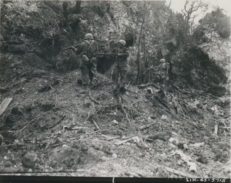 | 52 | | | 分 類 名: | 米国陸軍通信隊 沖縄関係 | | 撮 影 地: | 沖縄 | | 撮 影 日: | 1945年6月12日 | | アルバム名: | 米陸軍通信隊写真 13 | | 写真解説: | 【原文】Men of Co. C, 17th Inf, 7th Division fire into a cave on the side of the escarpment during the process of cleaning out Japs. / 【和訳】日本兵の掃討作戦中、断崖横の洞窟に向かって発砲する第7師団第17歩兵隊C中隊の兵士。 | |