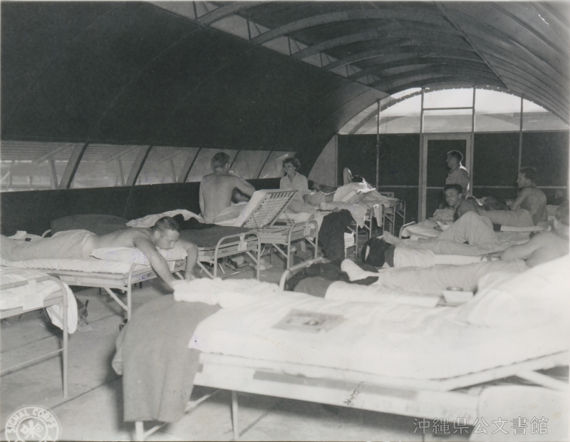 | 40 | | | 分 類 名: | 米国陸軍通信隊 沖縄関係 | | 撮 影 地: | 沖縄 | | 撮 影 日: | 1945年5月19日 | | アルバム名: | 米陸軍通信隊写真 13 | | 写真解説: | 【原文】Nurse lieutenant Betty Brown, Carlisle, Pa., helps patients to relax in the Red Cross game room in the 82d Field Hospital which specializes in Neuropsychiatric therapy, and is the only hospital of its kind in the Pacific. Okinawa. / 【和訳】第82野戦病院の赤十字ゲームルームで患者をリラックスさせるベティ・ブラウン看護隊中尉(ペンシルベニア州カーライル)。 この病院は精神神経治療を専門とする病院で、この種の病院は太平洋でこの病院だけだった。沖縄。 | |