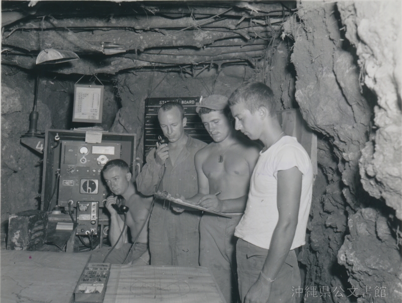 | 60 | | | 分 類 名: | 米国陸軍通信隊 沖縄関係 | | 撮 影 地: | 沖縄 | | 撮 影 日: | 1945年6月16日 | | アルバム名: | 米陸軍通信隊写真 13 | | 写真解説: | 【原文】Two days before he was killed in action, Lt. Gen. Simon Bolivar Buckner, CG, U.S. Tenth Army, recorded congratulatory messages to his officers and men for their part in the Okinawa campaign. Recording assistants with him here are, l. to r. Sgt. Fred Baxter, Madison, Wisconsin; and Sgt. Bob MacLeod, Bismarck, N. Dakota. / 【和訳】戦死する2日前に、沖縄戦に参加した将校や兵士たちへの祝辞を録音する第10陸軍総司令官サイモン・ボリバー・バックナー中将。側で録音を手助けしたのは、左からフレッド・バクスター軍曹(ウィスコンシン州マディソン出身)と、ボブ・マクラウド軍曹(ノースダコタ州ビスマーク出身)。 | |