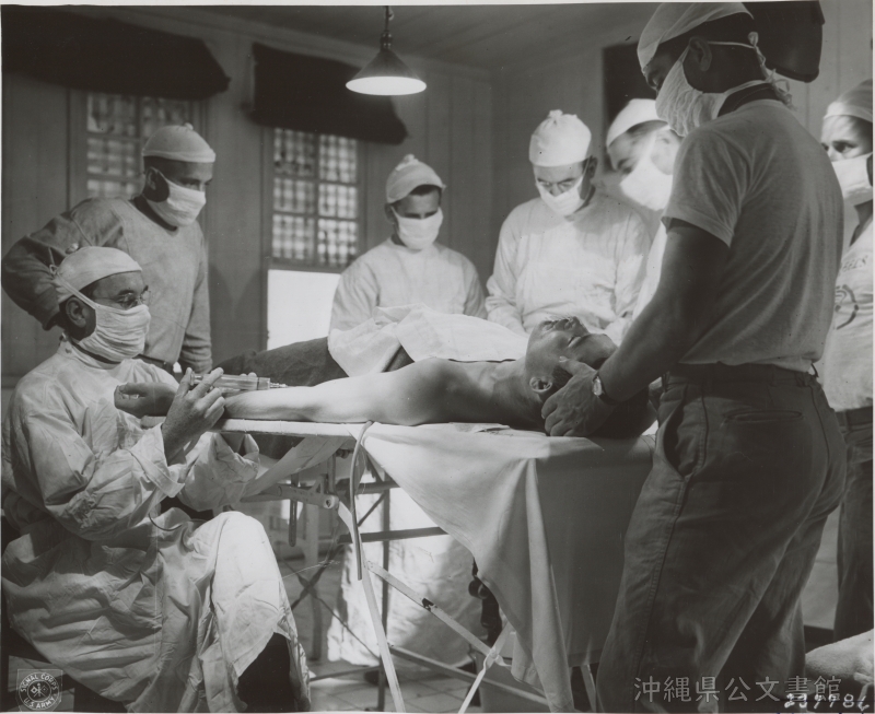 | 43 | | | 分 類 名: | 米国陸軍通信隊 沖縄関係 | | 撮 影 地: | 沖縄 | | 撮 影 日: | 1945年5月23日 | | アルバム名: | 米陸軍通信隊写真 13 | | 写真解説: | 【原文】Medical Officers and Surgery Team perform a minor operation in the clearing station. The 102nd Med. Bn. 27th Inf. Div. Okinawa. / 【和訳】治療後送所で小手術を行う医療隊と手術班。第27歩兵師団第102医療大隊。 沖縄。 | |