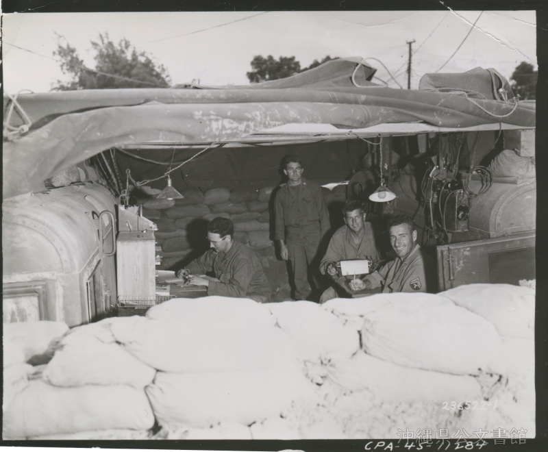 | 45 | | | 分 類 名: | 米国陸軍通信隊 沖縄関係 | | 撮 影 地: | 沖縄 | | 撮 影 日: | 1945年5月7日 | | アルバム名: | 米陸軍通信隊写真 14 | | 写真解説: | 【原文】Interior view of the 1st Engineer Special Brigade Message Center, between teletype and message center vans. / 【和訳】第1工兵特殊旅団のテレタイプとメッセージセンター車両の間の内部の様子。 | |