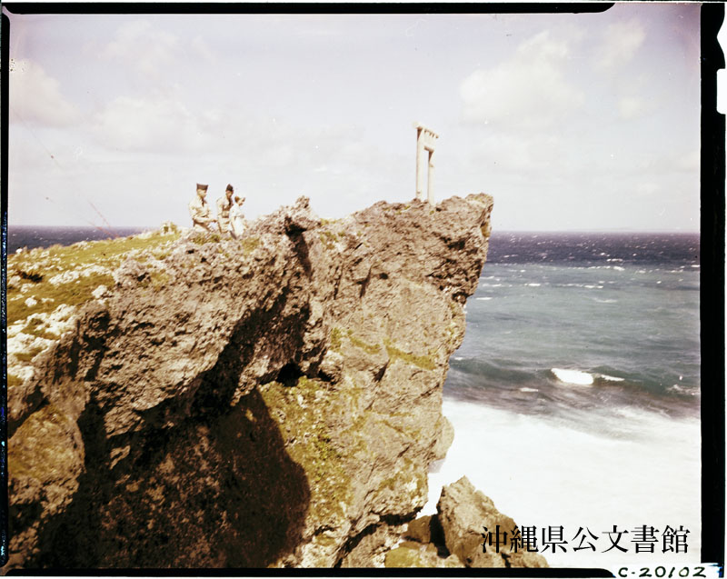 【和訳】 ローランド R ソロモン偵察隊運転手、第2空軍将校、第503軍情報部。フィリピン海(東シナ海)に突き出した断崖にえぐり造られた洞窟のある恩納岬(万座毛)の探検。沖縄旅行中