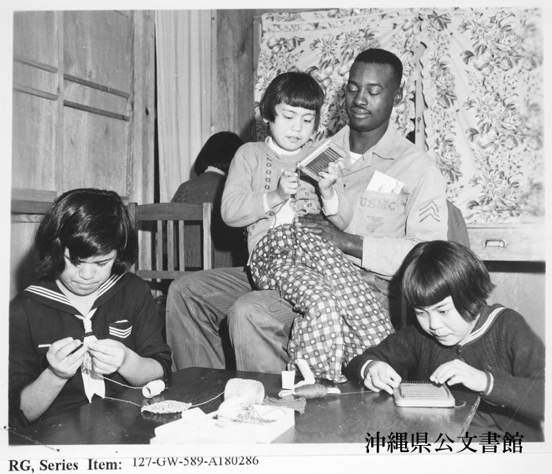 【和訳】 盲聾唖学校の建設を手伝う海兵隊員のひとり、フェレル三等軍曹。短い休憩時間の中、子供たちの遊び相手となる
