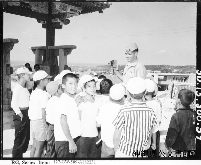【和訳】 ビーバー中尉と子供たちの関心の的であるビデオカメラ。首里にて