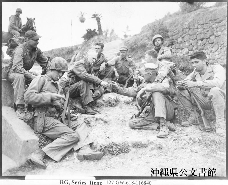 【和訳】 海兵歩哨隊と道端で休むコラムニスト、アーニー・パイル