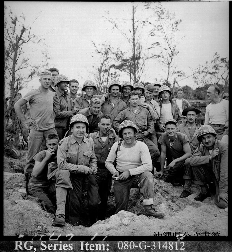 【和訳】 兵士らを訪ねるアーニー・パイル。沖縄にて。