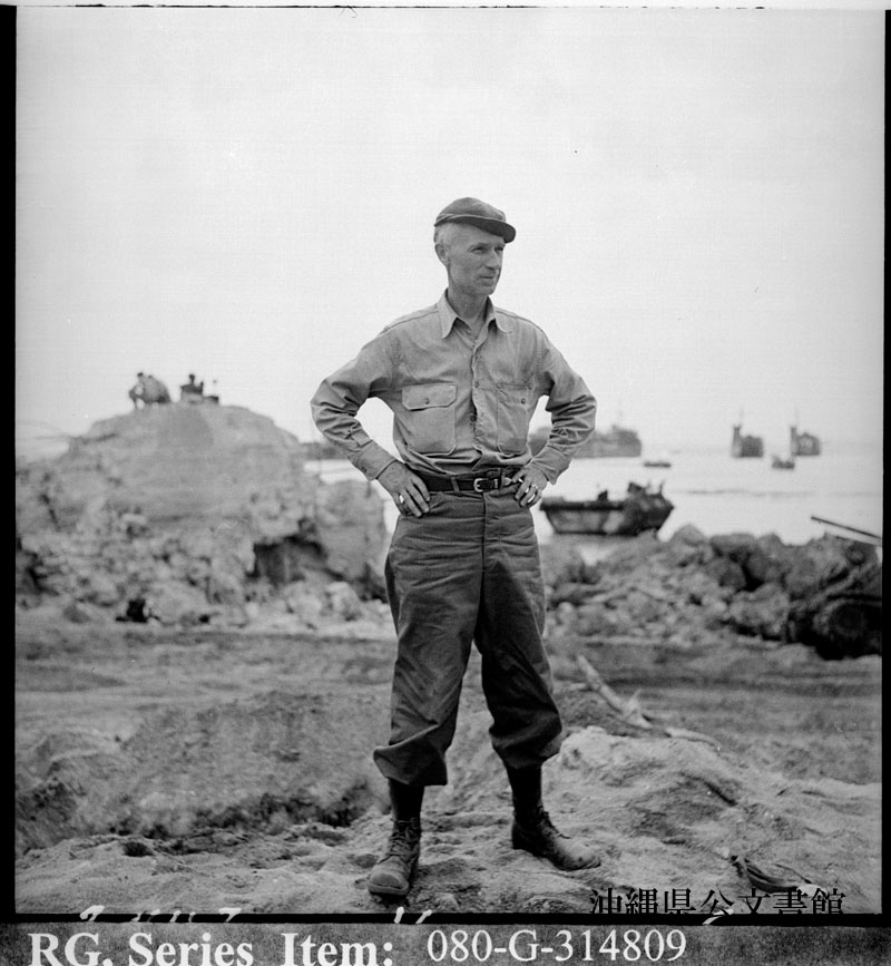 【和訳】 従軍記者のアーニー・パイル。沖縄にて。