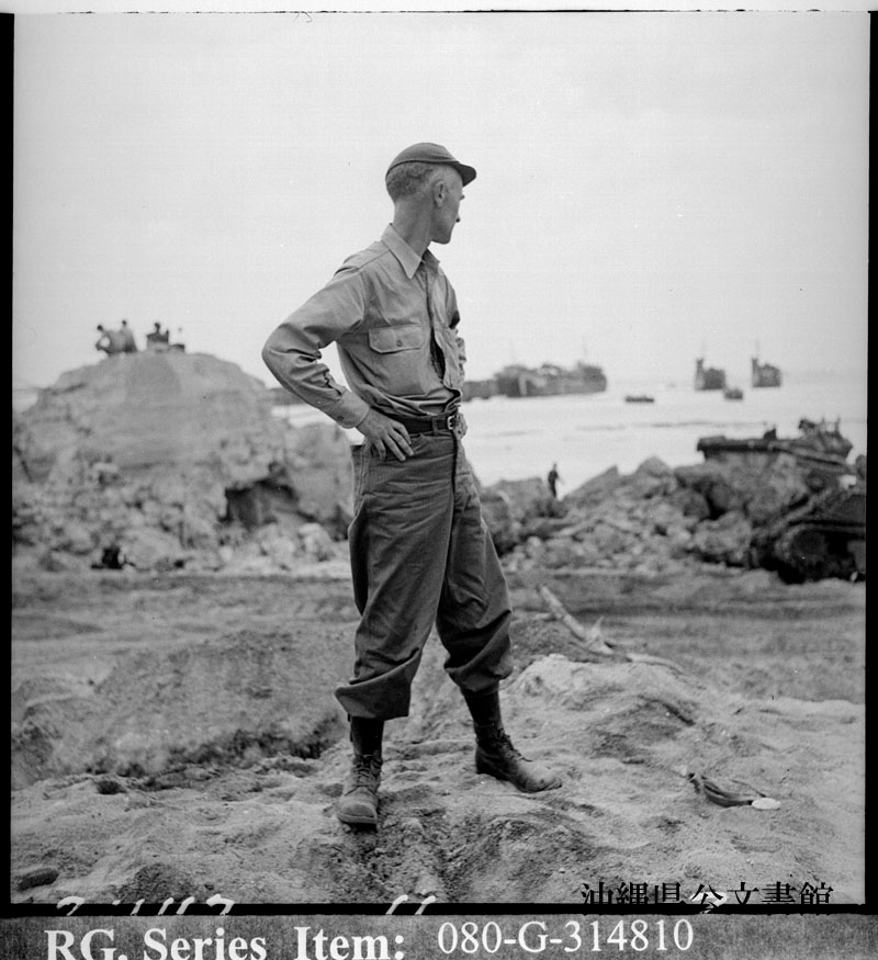 【和訳】 従軍記者のアーニー・パイル。沖縄にて。
