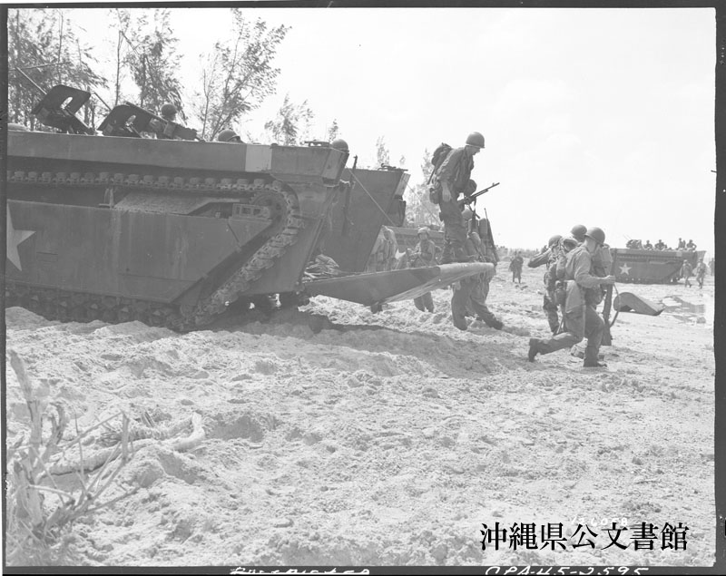 【和訳】 海岸に着いて上陸艇から下船する歩兵隊