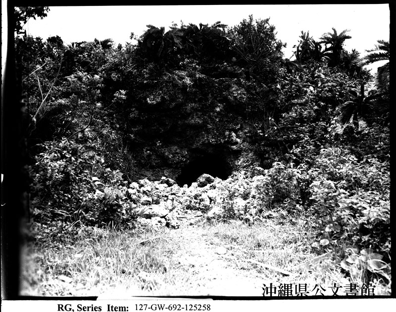 【和訳】 那覇飛行場の南東側の丘にある陣地壕の様子。この壕は、那覇飛行場に隣接する海岸への上陸作戦の際の歩兵の銃座として使われた。