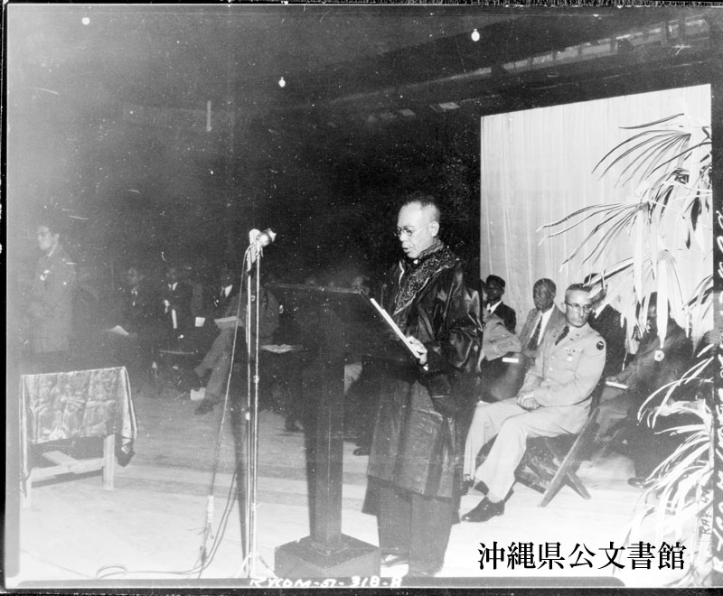 【和訳】 琉球上訴裁判所の当間首席判事。新しい自由な琉球臨時中央政府の判事達は職務遂行にあたっては完全な分権を享受していた