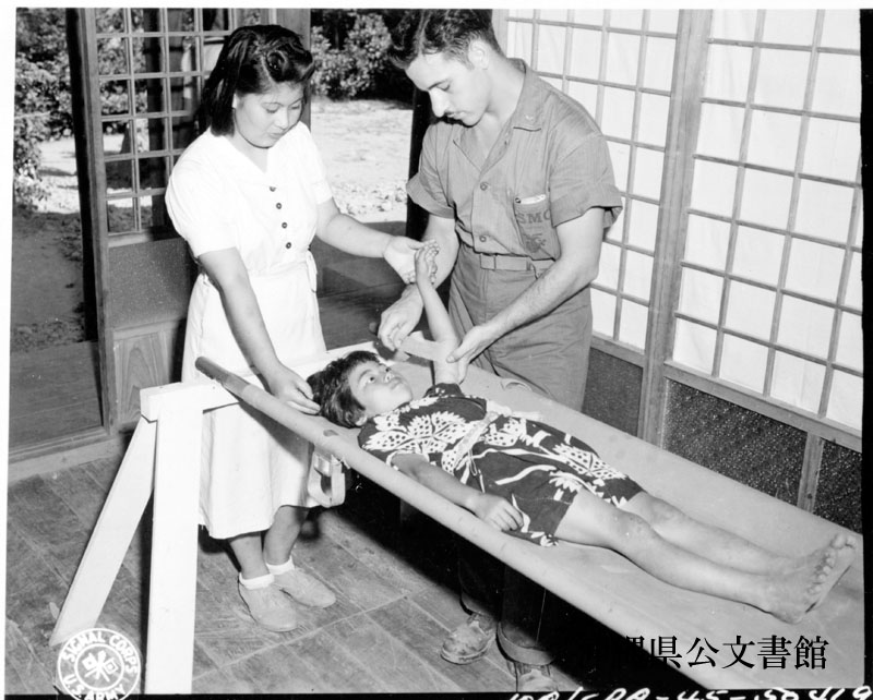 【和訳】 住民に対する救急処置を管理する米海兵隊フランコヴェウギア中尉の補佐をするサンフランシスコ生まれのタイラ・メアリー。彼女は11歳の時に沖縄に戻ってきた。