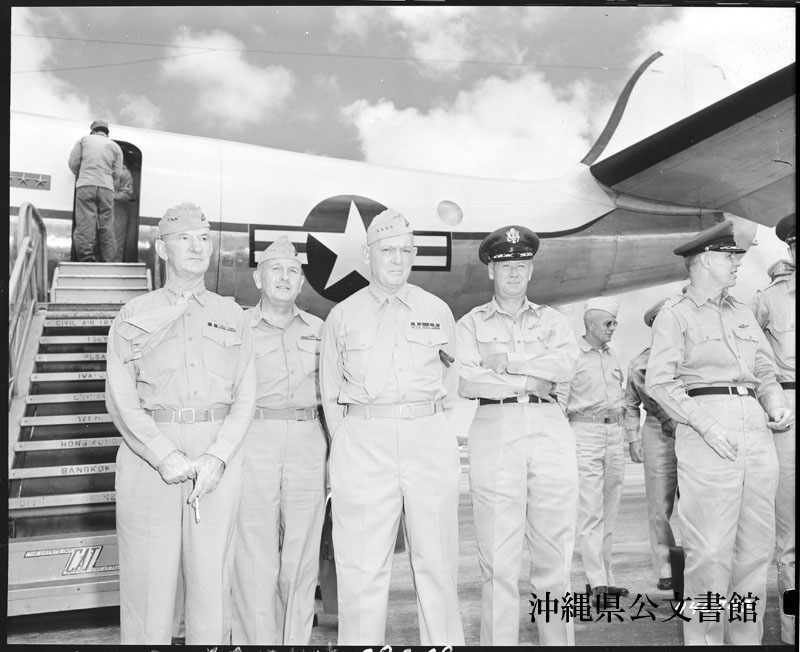 【和訳】 嘉手納基地に降り立った米軍の司令官達。左からUSMC空軍司令官補ブライス中将、第20空軍司令官アプテグロウブ少将