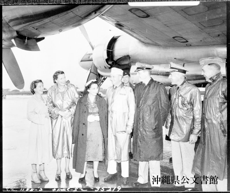 【和訳】 嘉手納基地に降り立った際、出迎えを受ける陸軍副長官ローゼンバーグ女史