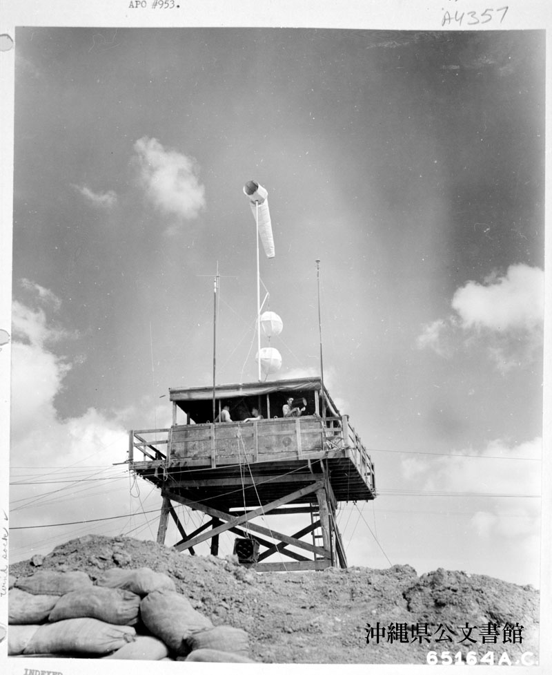 【和訳】 陸軍航空隊と海兵航空隊が交代で操作する嘉手納飛行場の管制塔。