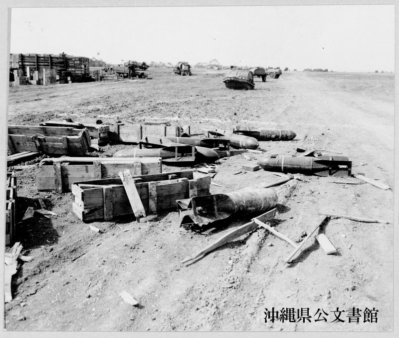 【和訳】 嘉手納飛行場端に置かれた日本軍の爆弾