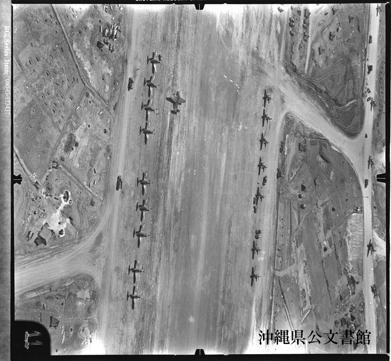 【和訳】 嘉手納飛行場と周辺地域の空中写真。
