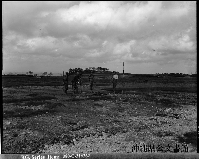【和訳】 読谷飛行場を測量する米海兵隊の工兵ら。
