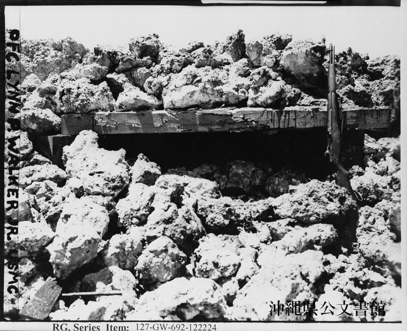 【和訳】 那覇の町を見渡すトーチカ--重機関銃と3人の日本兵の死体がこのトーチカで見つかった。