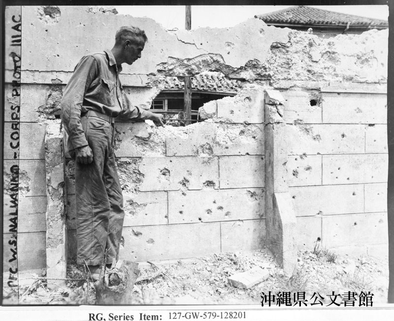 【和訳】 那覇の街で塀の穴を調べるヘダール中尉