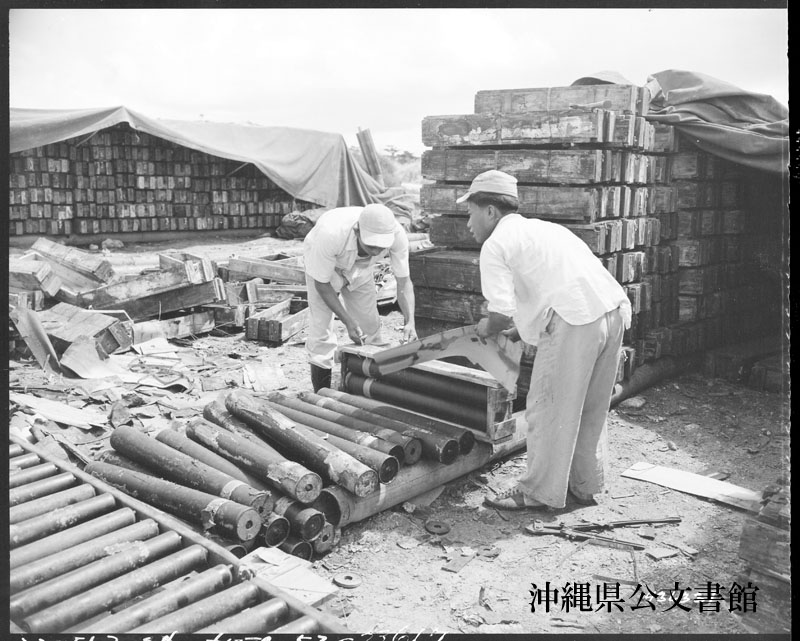 【和訳】 迫撃砲、弾丸などのあるライカム陸軍弾薬庫で働く地元住民