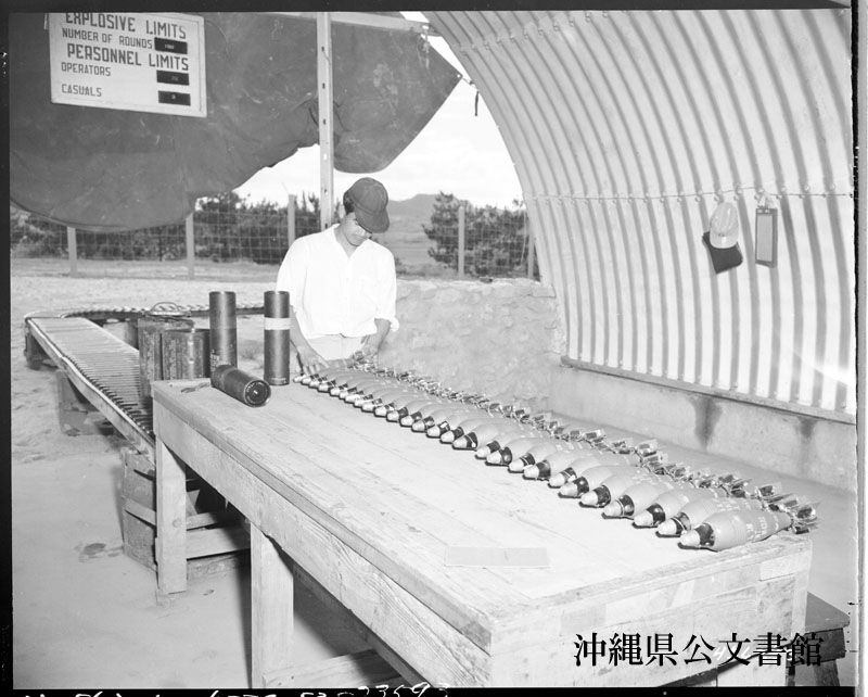 【和訳】 迫撃砲、弾丸などのあるライカム陸軍弾薬庫で働く地元住民