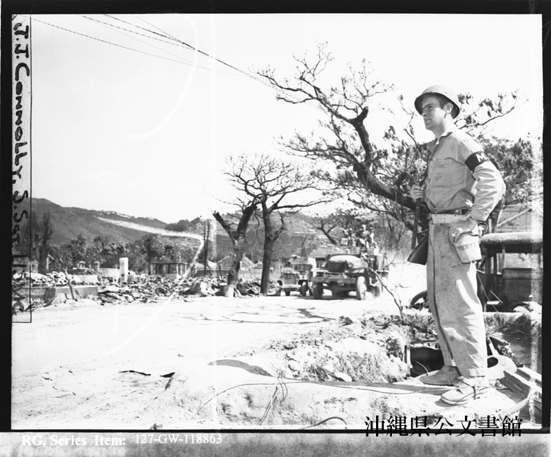 【和訳】 名護市の街頭で警備にあたる海兵隊憲兵(MP)