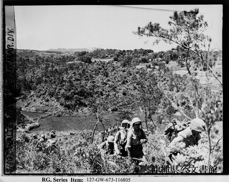 【和訳】 到達地域。上陸後15日に到達予定だった戦線に上陸から2日目で到達した、第5海兵連隊第2大隊の兵士。