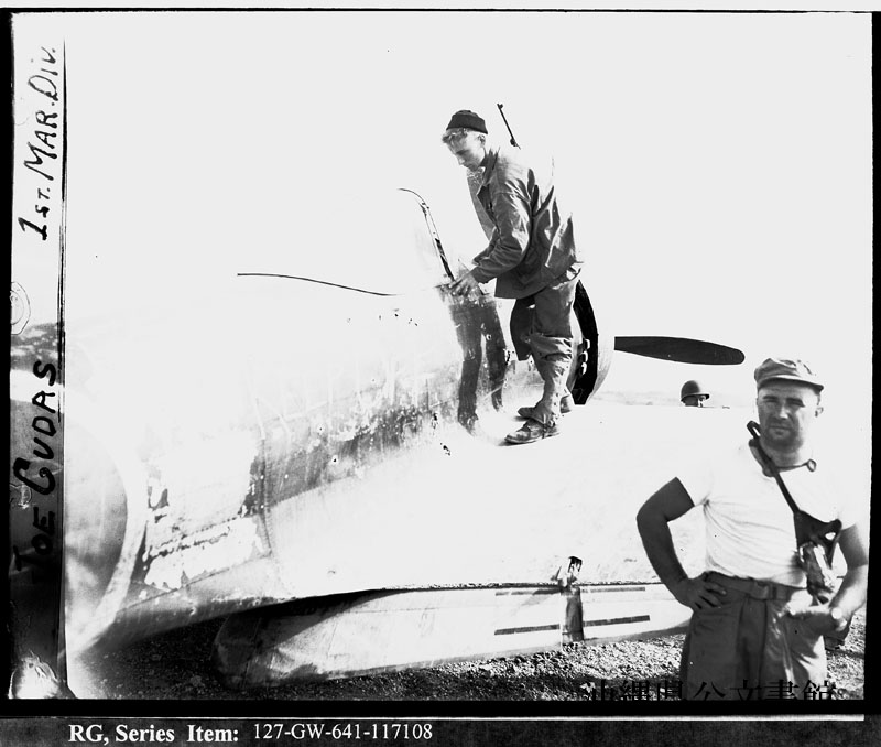 【和訳】 日本軍の占拠地と思い込んで夜間に着陸し、米軍に捕らえられた日本軍機隼型オスカー型)。