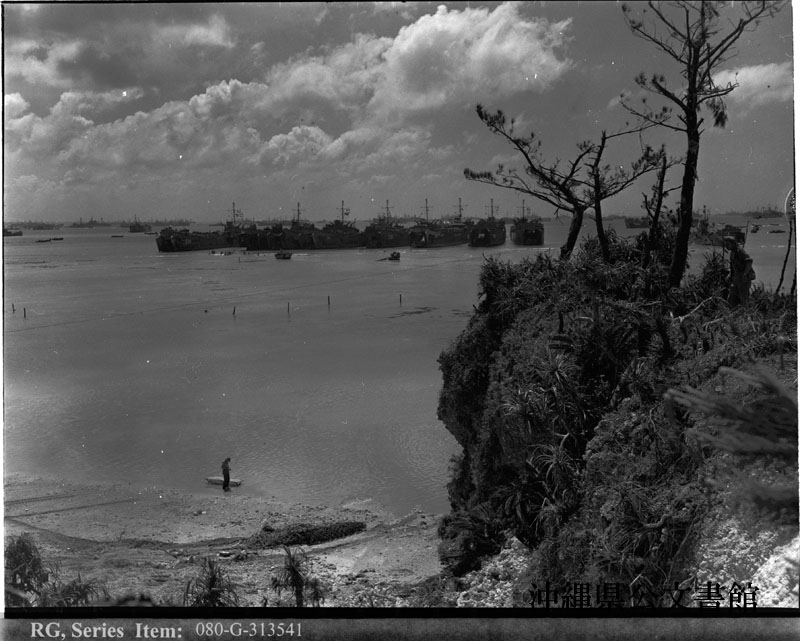 【和訳】 侵攻2日後、戦車揚陸艦(LST-581、LST-562、LST-986、LST-739、LST-580)が上陸し、軍需品を降ろす。