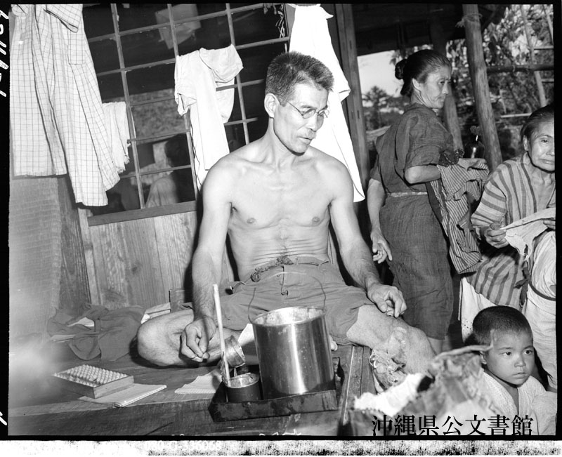 【和訳】 地元の食料配給所。沖縄本島の嘉陽にて。