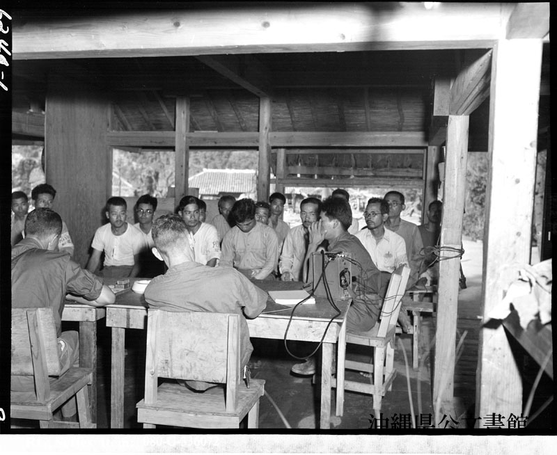 【和訳】 軍政府職員と班長の会合。沖縄本島の嘉陽にて。