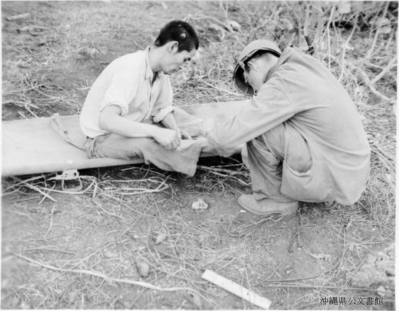 【和訳】 日本兵に応急処置を施すジョージア州エルバートン市のヘイパイント・パーカン?医療部員。