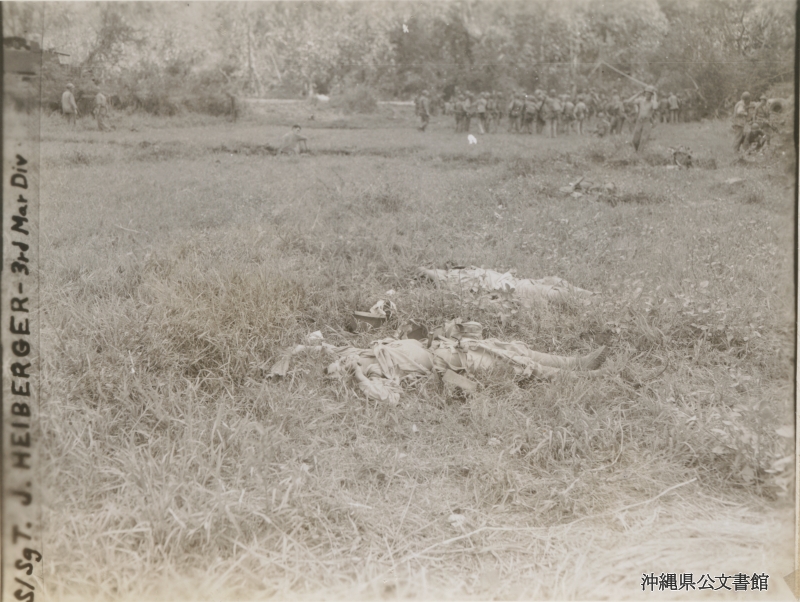 【和訳】 2人の日本兵の死体 -- 1人はハラキリ自決をし、腹にナイフが刺さっているのが見える。