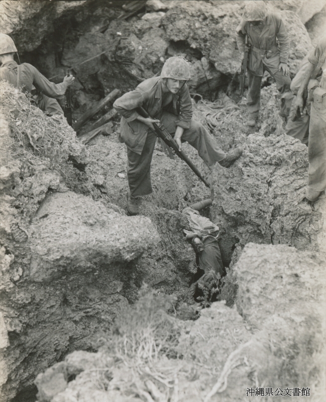 【和訳】 敗者 -- この戦いでの敗者はまたも日本兵である。 敵はサイパンの岩場に拠点を置くと決め、海兵隊のライフルの前に倒れた。