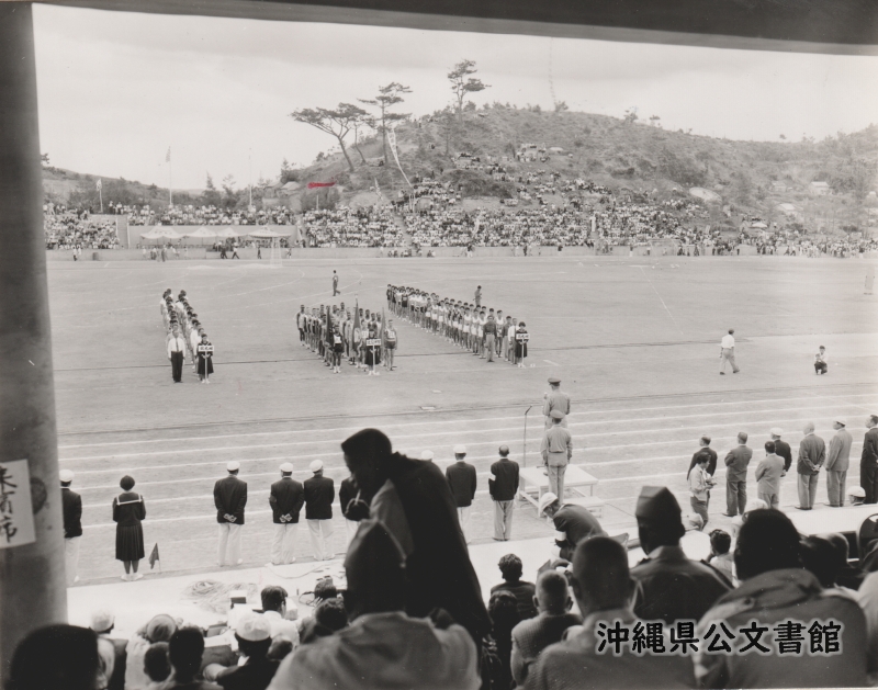 【和訳】名護陸上競技場で開催された米軍-九州-琉球の三者親善陸上競技大会