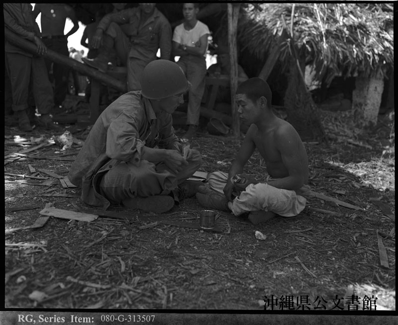 【和訳】 尋問される日本人捕虜。沖縄にて。