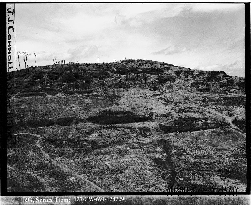 【和訳】 北西に“シュガーローフ・ヒル”の南東側ふもとを望む。ここは日本軍が防御していた斜面。